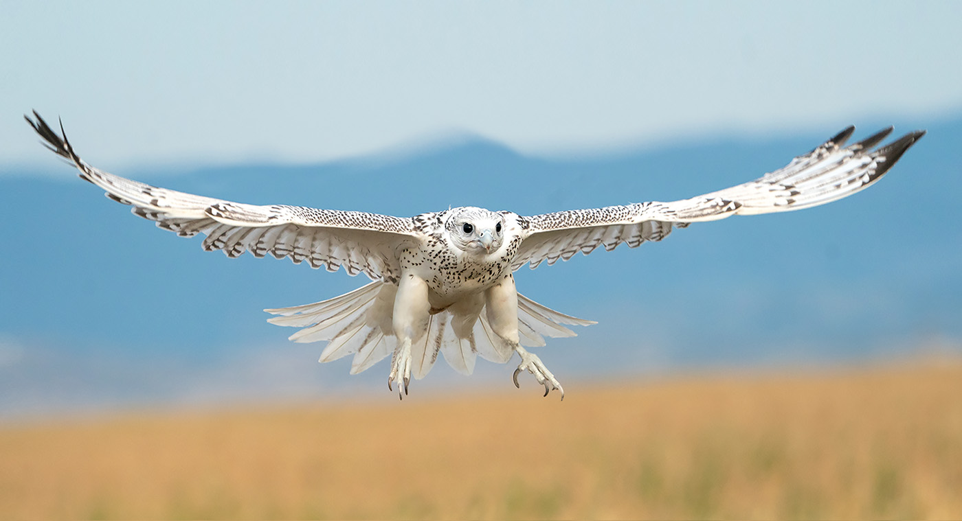 Gyrfalcon coming in for a landing