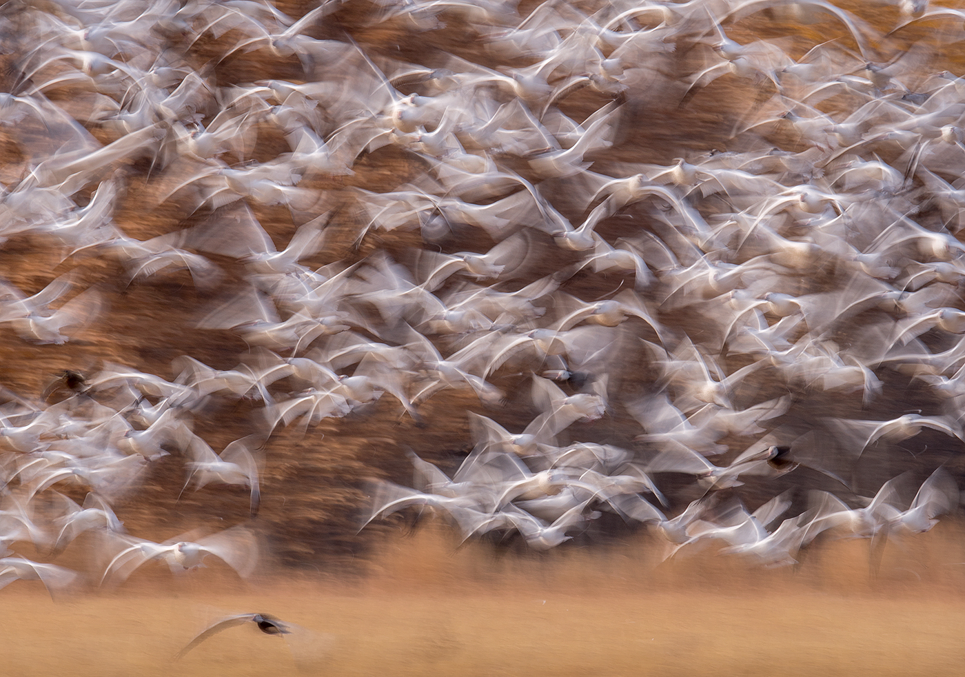 Slow shutter on snow geese at take off
