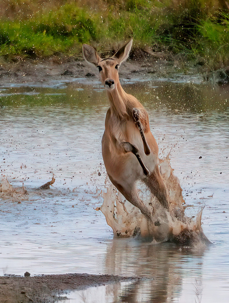 Bohor Reedbuck running through a swamp IMG_9788ab