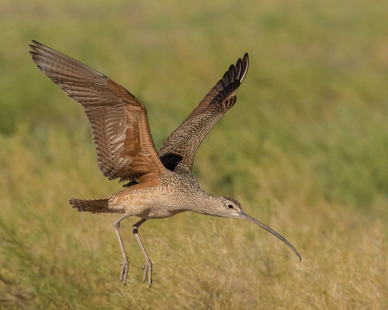 Long-billed Curlew cominn in for landing