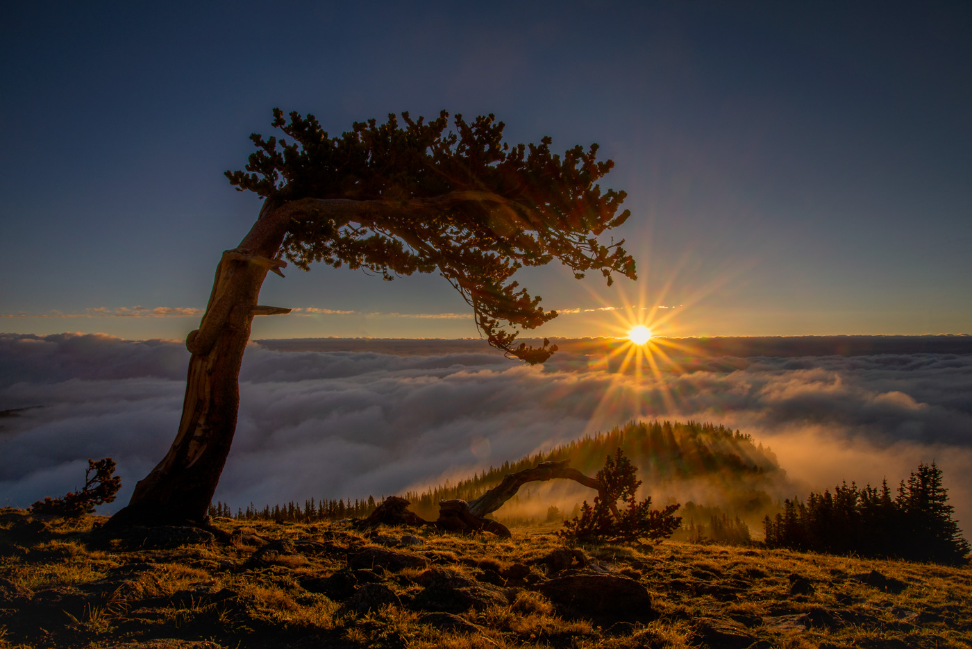 The sun rising above the clouds on Mt Evans, CO