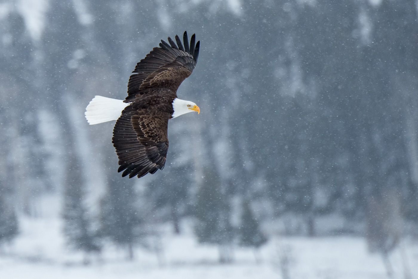 Eagle flying in the Lamar Valley, Yellowstone NP.