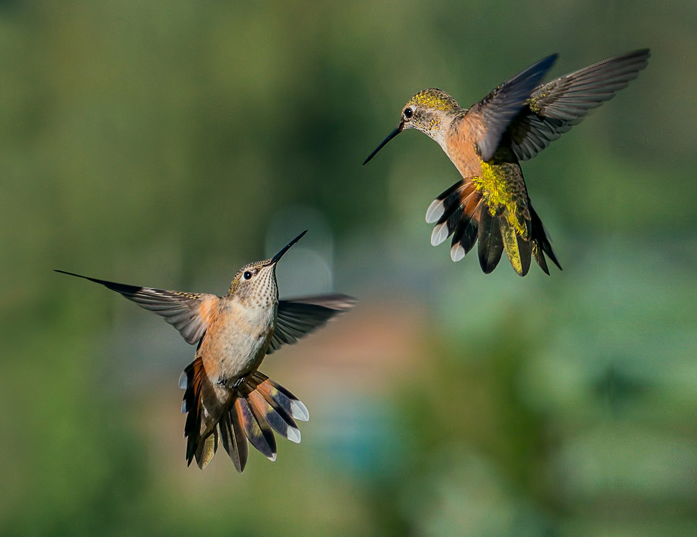 Fight for the Feeder – A Broadtail hummingbird defends its territory while another broadtail tries to invade its space. Silverthorne, Colorado.