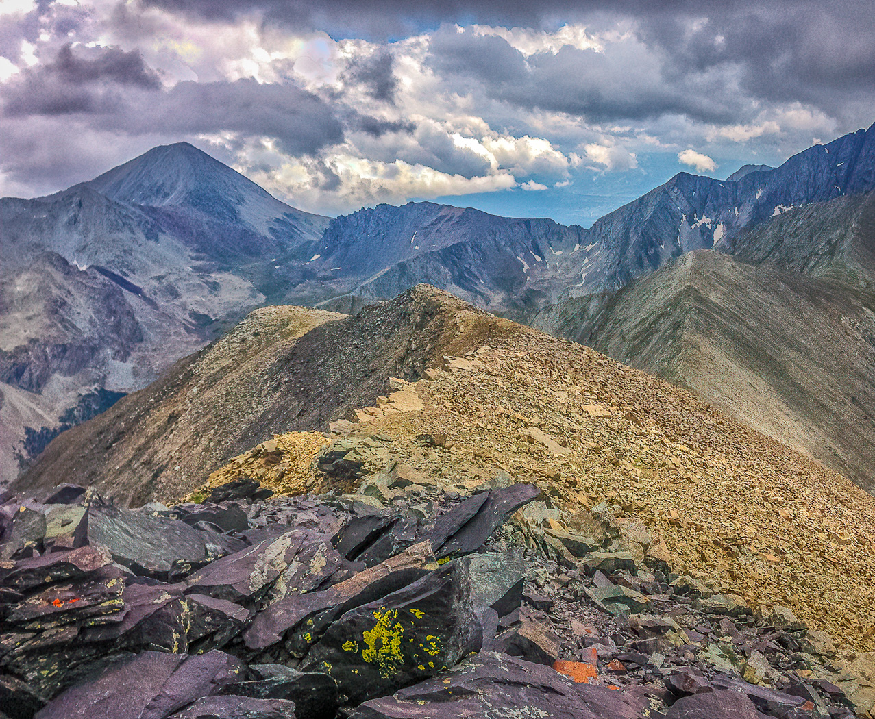 I've always regretted that I had left my gear behind for this hike, but at least I had an Iphone. Taken from California, one of the 13ers located just north of the Blanca massif in the Sangre de Cristo