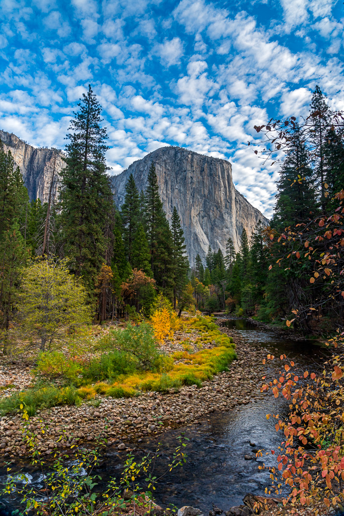 El Capitan with fall colors and Buttermilk clouds