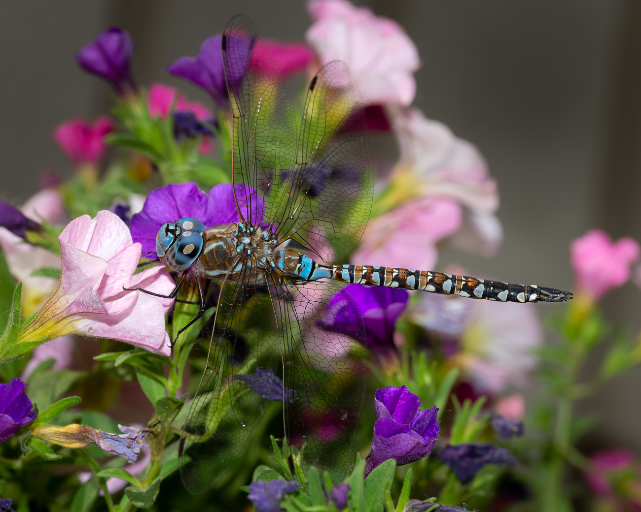 Dragon fly on flowers in the front yard. It let me take a couple of shots before it headed out. I love their wings but their tails are fascinating also.