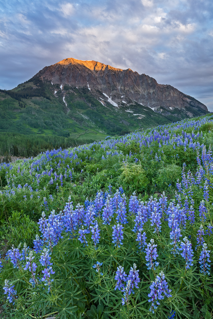 First rays of sunlight hit Gothic Mountain near Crested Butte in late June this year as seen from the Deer Creek Trail.