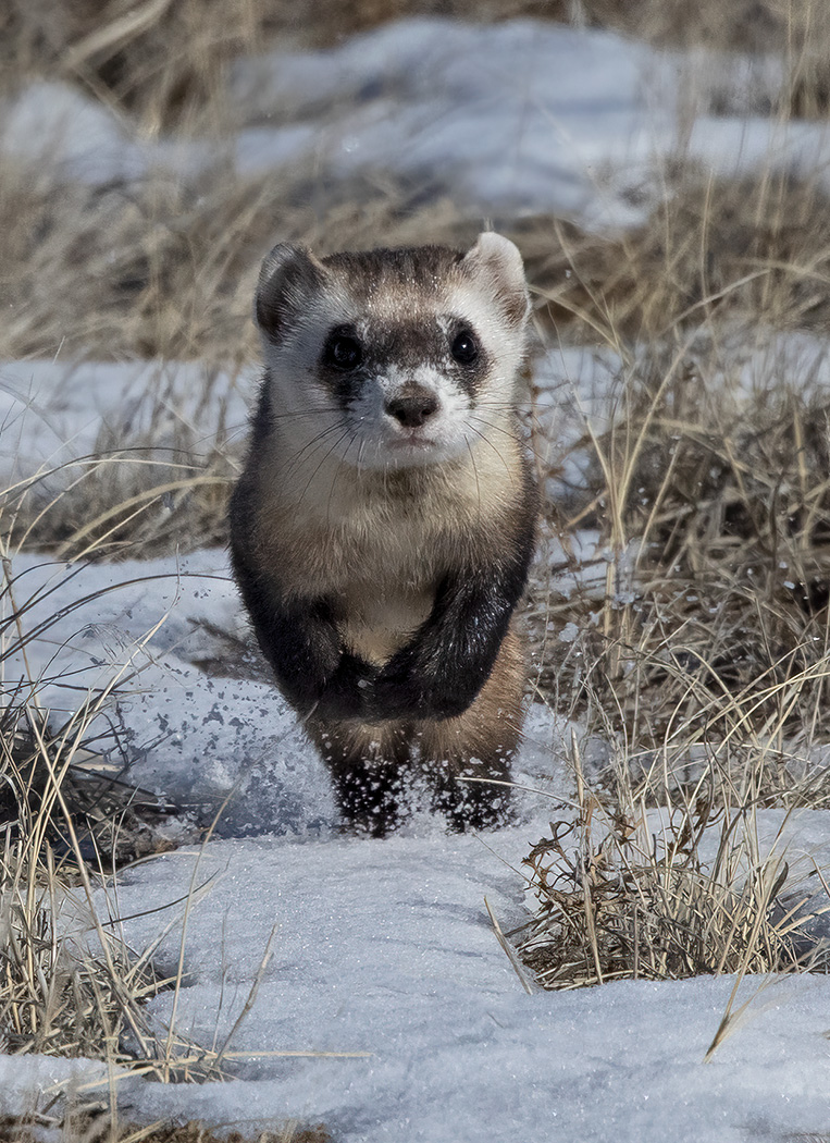 Black-footed Ferret running in the snow CGS_7781