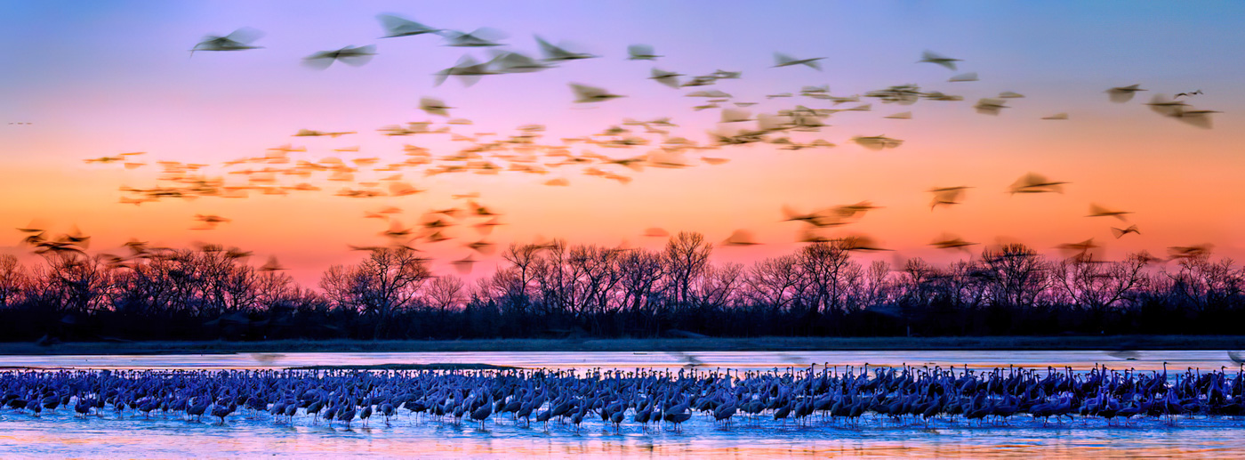 Had to find the right balance of all aspects of the exposure triangle to freeze the birds on the ground yet have some motion blur for the cranes in flight and just the right Av to get the exposure and a good DOF