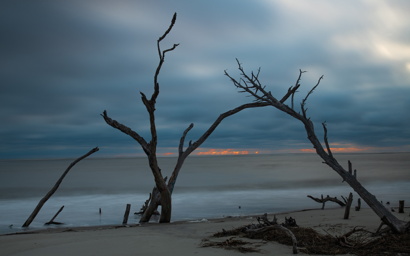 Long-exposure of a storm blowing off the coast