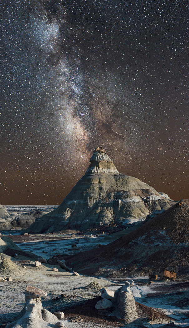 This is a composite of 2 images. The foreground was taken at 6PM and the sky with the milky way at Midnight. Creating the final image required multiple steps in Photoshop, Camera Raw, and Lightroom.