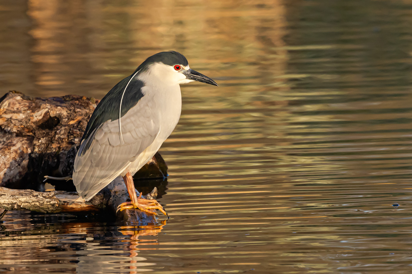 Black-crowned Night-Heron just sitting at water's edge in the morning light.