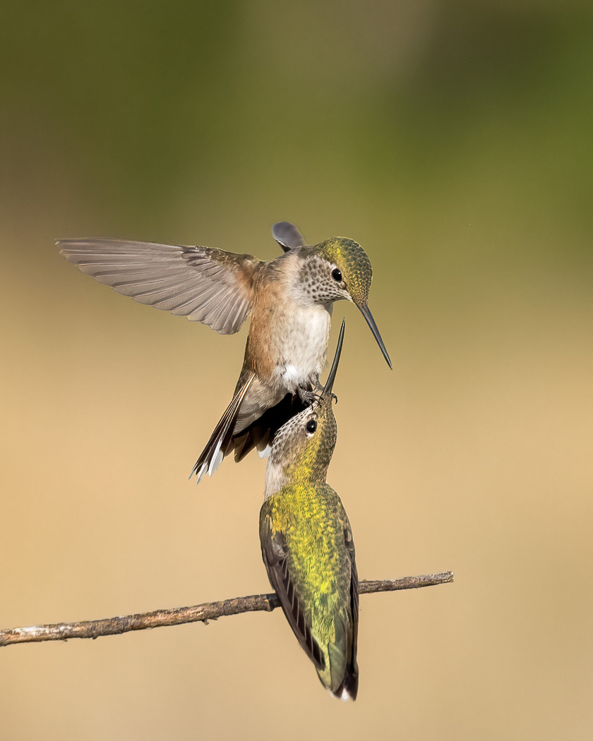 Juvenile Broad-tailed Hummingbirds in territorial scuffle.