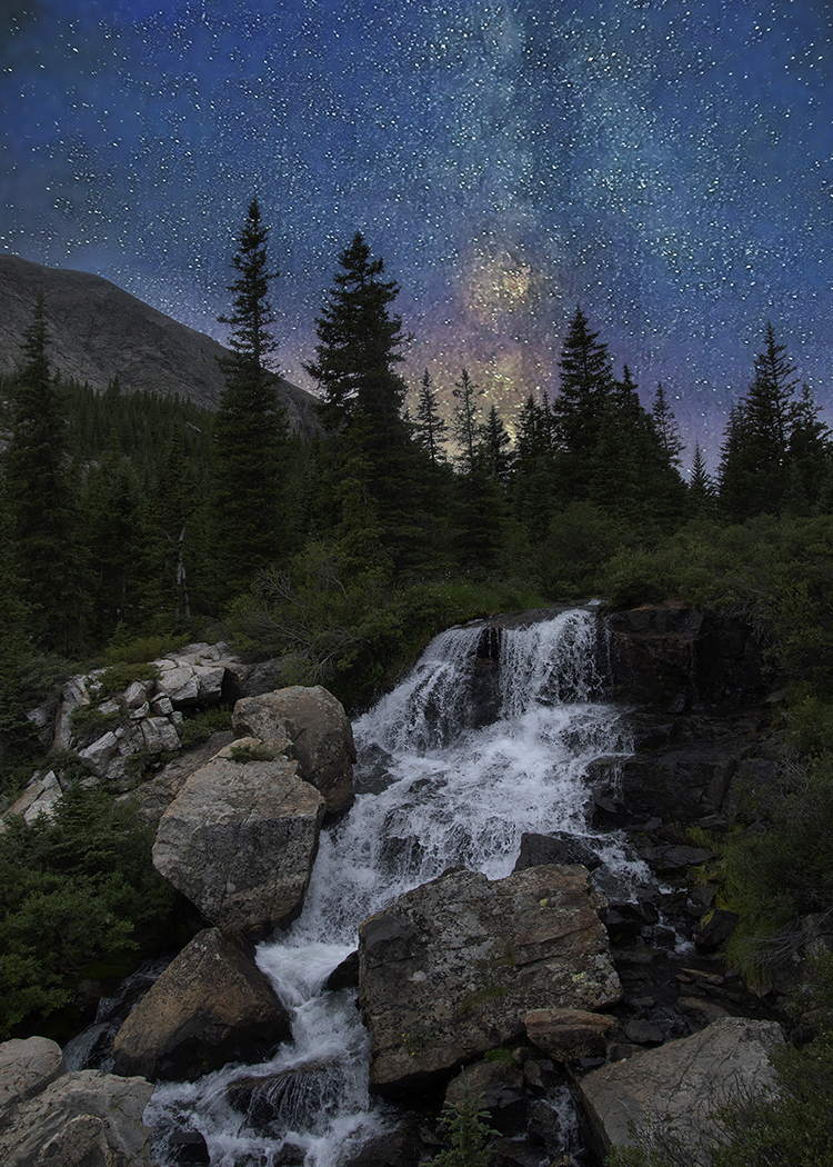 I combined a darkened daylight scene of Monte Cristo Falls with a recent Milky Way photo.