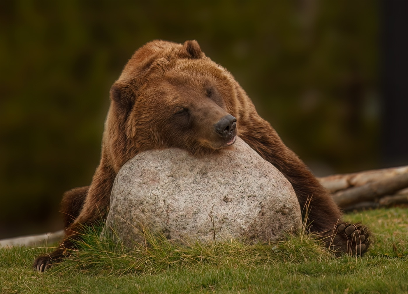 Grizzly sleeping on a rock