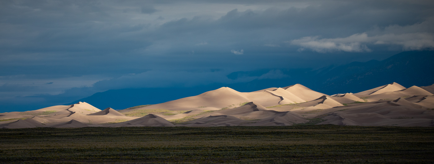 We were coming back into the park and the approaching storm clouds created gaps in the light. I was able to get a couple of shots as the sun briefly touched the dunes.