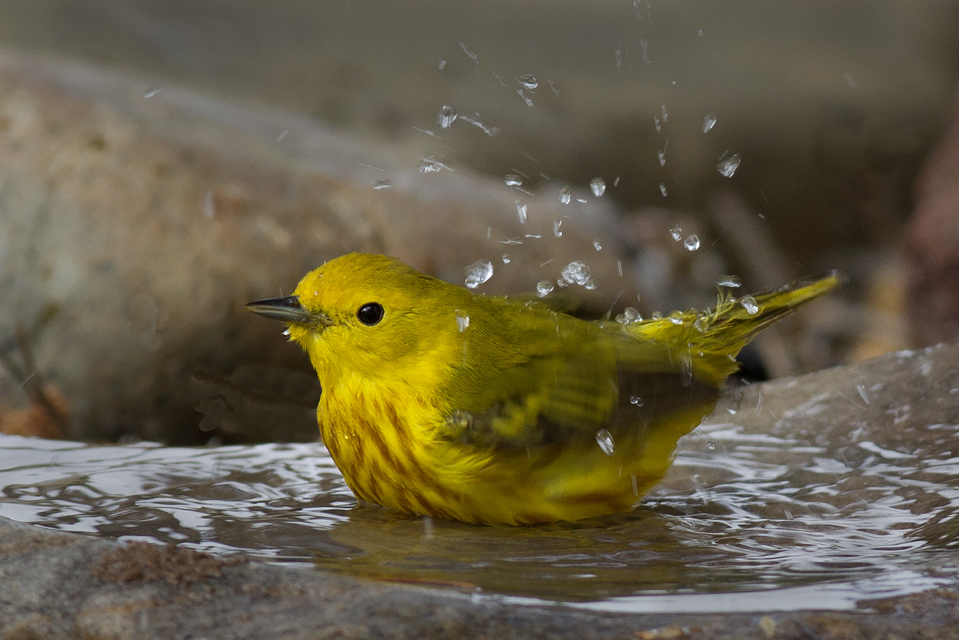 It was a warm day, and the birds appreciated water in a depression in a rock.