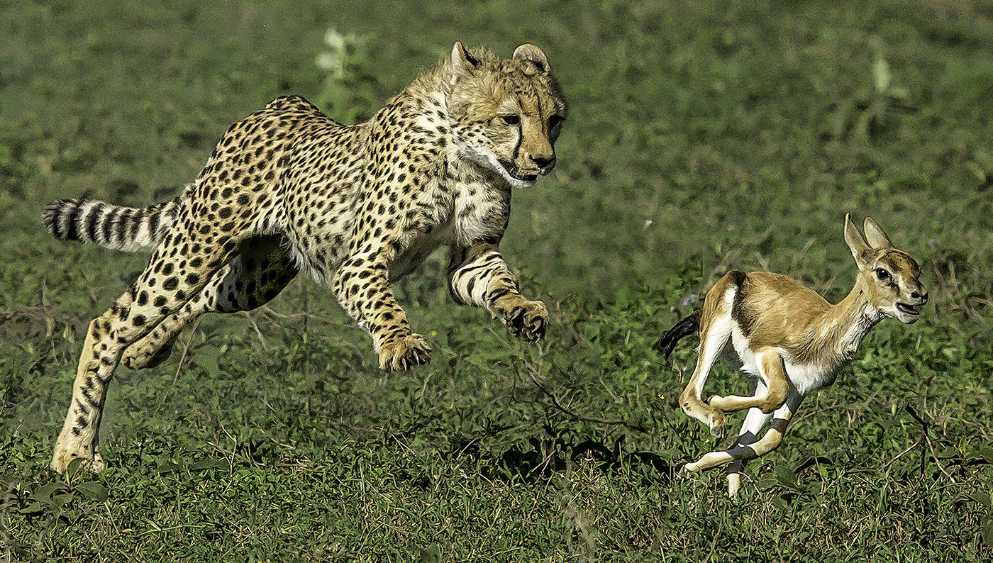 This was one of two young cheetahs that half-heartedly went after this tommie like a house cat with a mouse. Their mother had caught the tommie in one quick attack; and then let it loose for the two youngsters to practice their hunting skills.