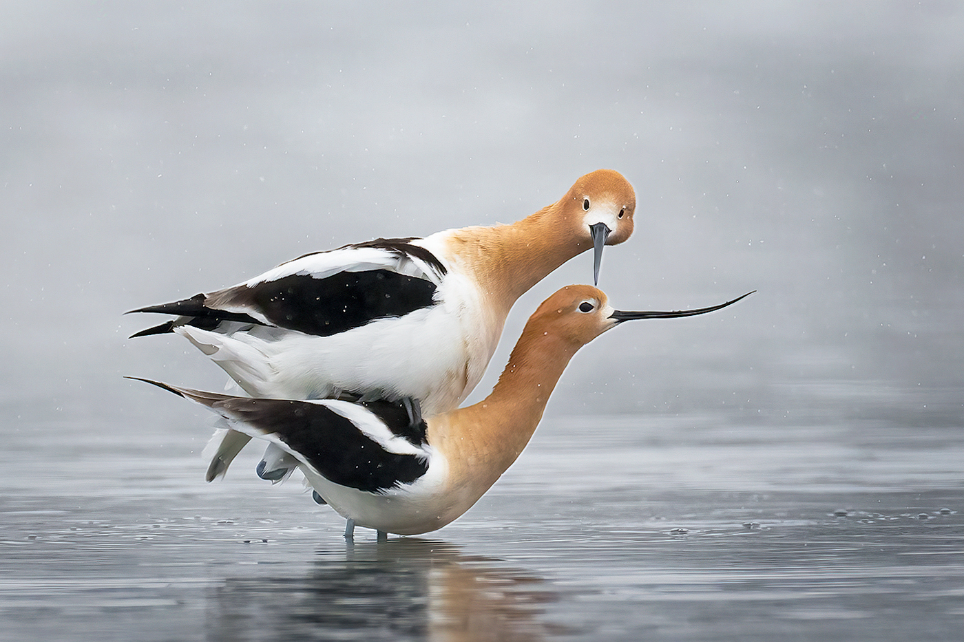 A pair of avocets mating.