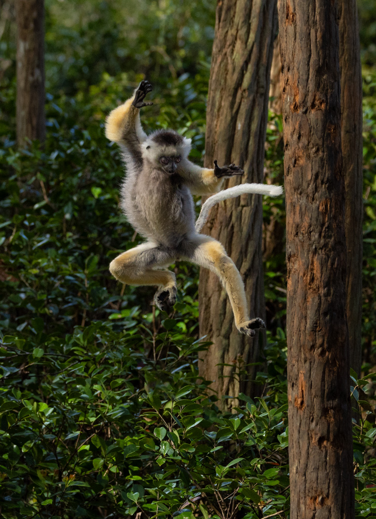 Captured this Verreaux Sifaka Lemur jumping from tree to tree on Lemur Island.