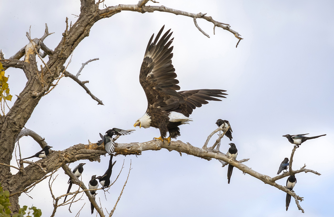 Bald Eagle being harassed by Magpies