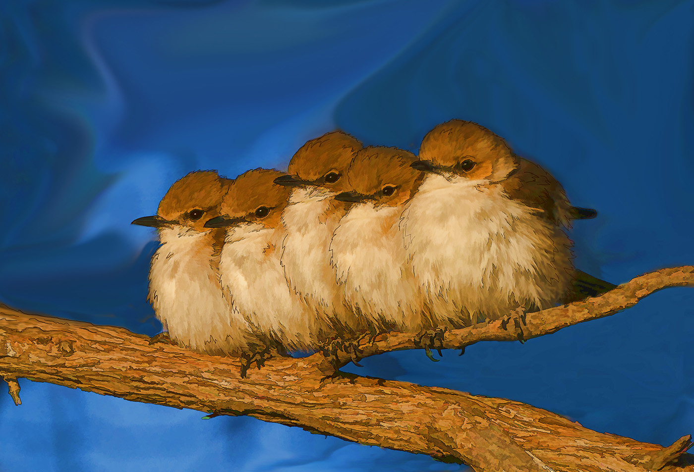 I removed a messy background of branches, used Topaz Simplify and Line IV, then drew in lots of fine lines.