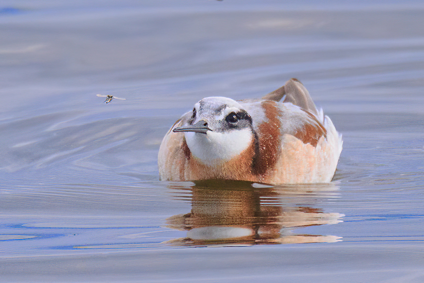 It was spring in the Rockies and there was a Mayfly hatch going on. The phalarope was enjoying the abundance of food.