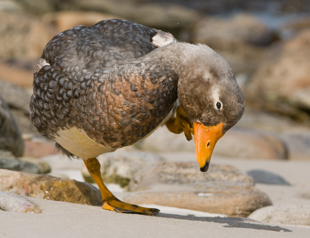 Steamer Duck Itching Face on Carcass Island Beach