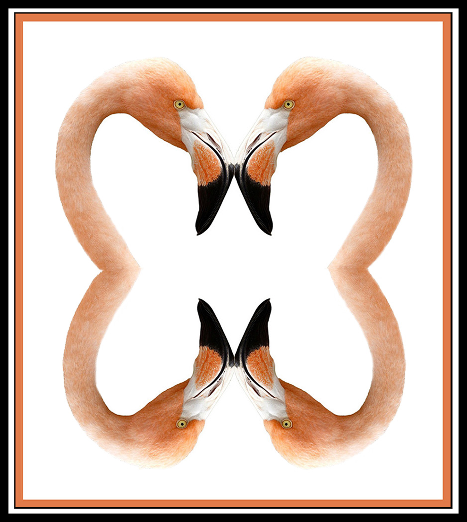 I selected the subject, then selected inverse. I brushed the background white. I created a new layer and a layer mask of the subject and then flipped the subject horizontally. I then doubled the canvas of my original in the horizontal direction and merged the 2 images. I then created a new layer and layer mask of that image and flipped it vertically. I doubled the canvas of the layer with 2 flamingos vertically and merged it with the previous layer. I then enlarged the canvas 4 times choosing the different background colors.
