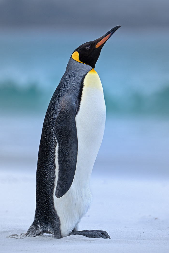 The cold Arctic winds blew hard as the King Penguin returned from the ocean. I had a difficult time holding my camera steady to capture this image. But then, he raised his head and trumpeted to communicate with his partner, and I worked like crazy to stay steady and shoot.