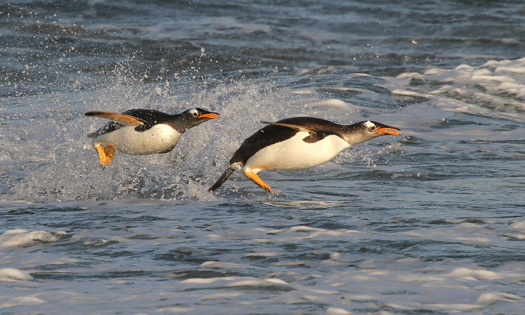 Gentoo Penguins flying formation