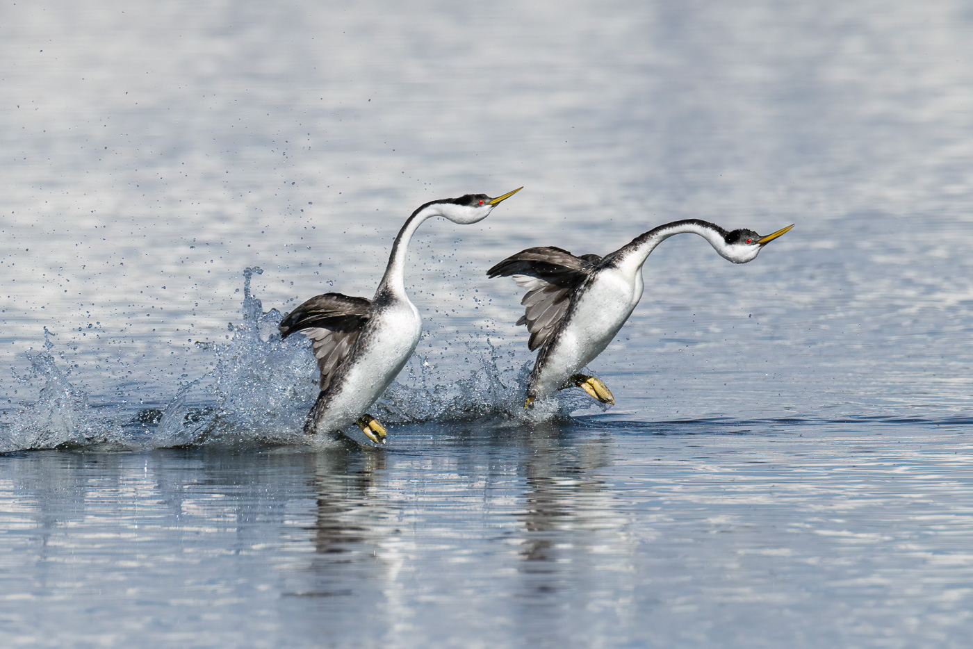 Pair of Western Grebes dancing as part of a courtship ritual.