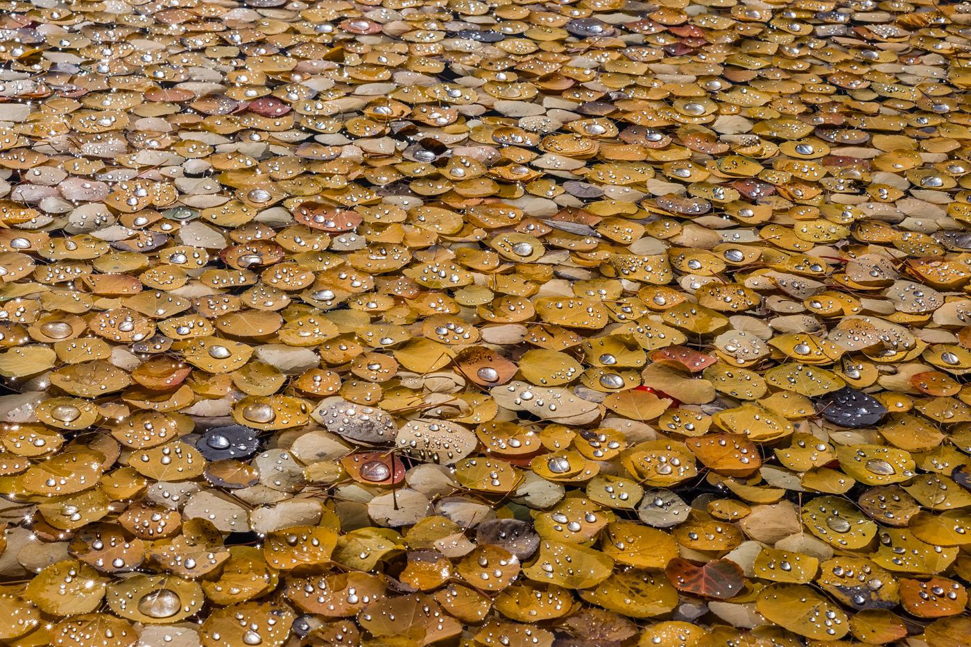 Aspen leaves after a storm