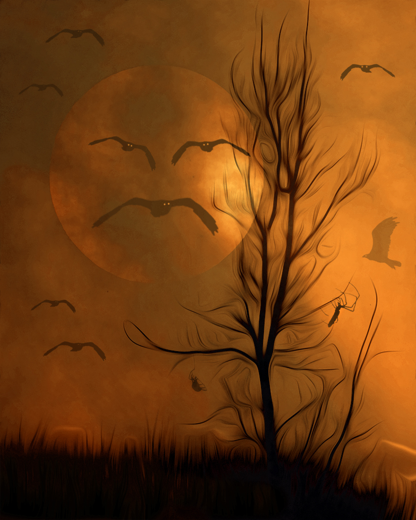 Created a Halloween scene using elements from 6 images from Chatfield SP and selected filters. No AI