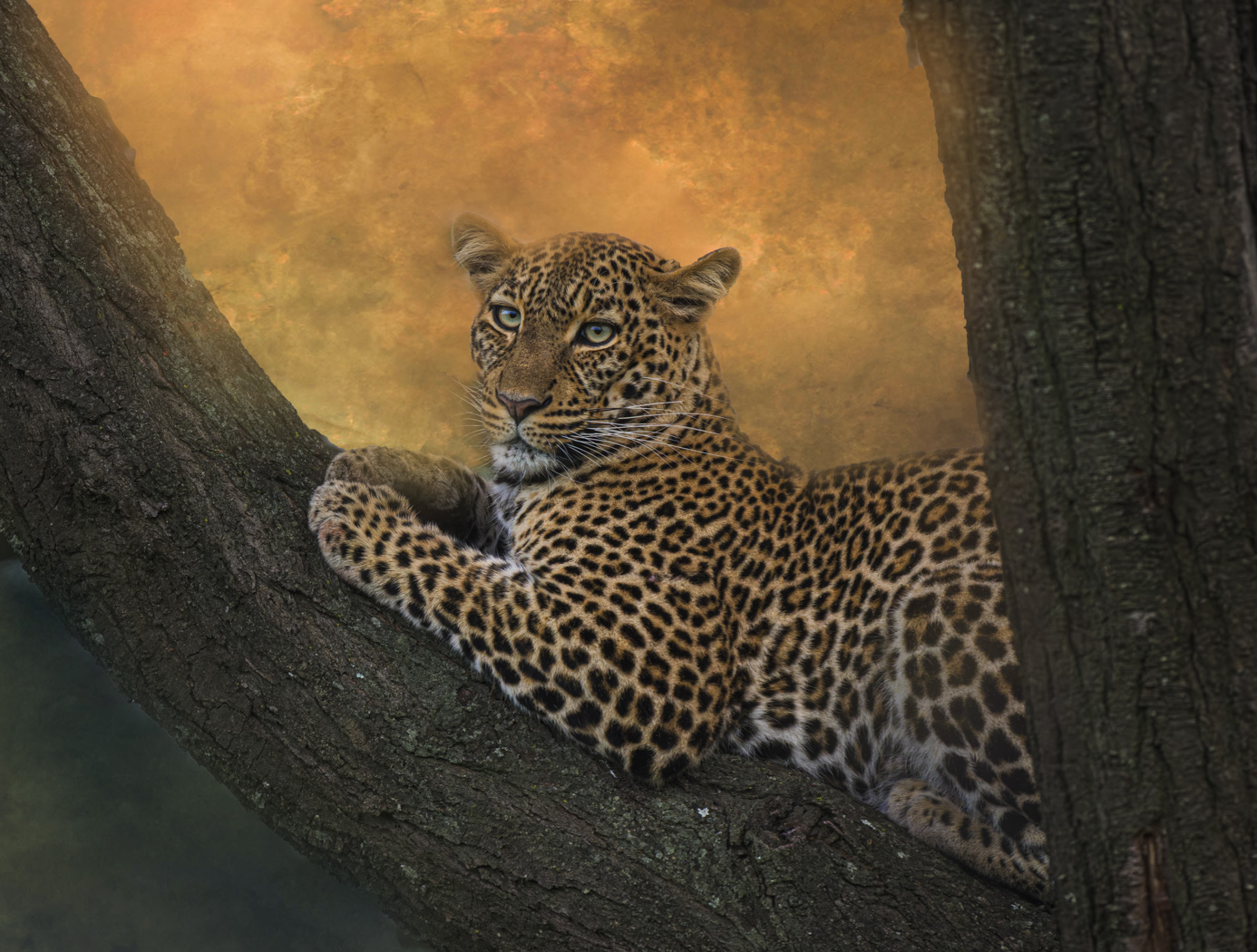 Textures have been added to the background through masking in PS, concealing distracting branches.