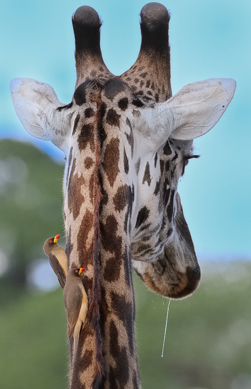 Giraffe, Oxpeckers and Drool