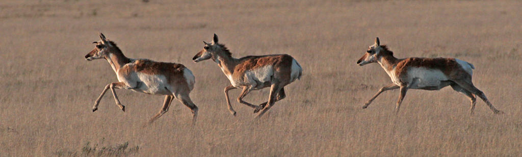 The first two pronghorn appear to be young males with "horns" that are short. The horn the first pronghorn may be a strange shape.
