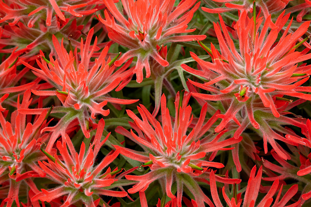 Common paintbrush (Castilleja chromosa) growing densely. The wildflower is also known as slickrock paintbrush or early paintbrush.