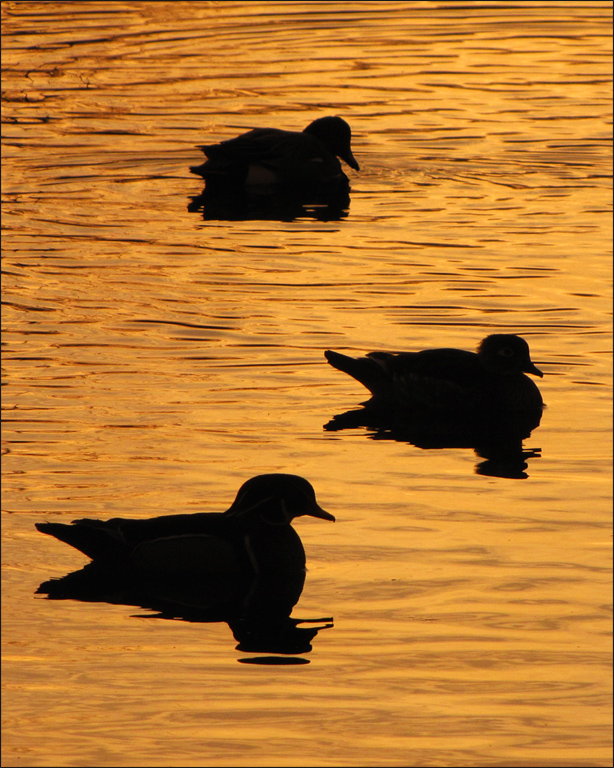 These ducks were swimming around the park looking for food and I thought made a good sunset shot.