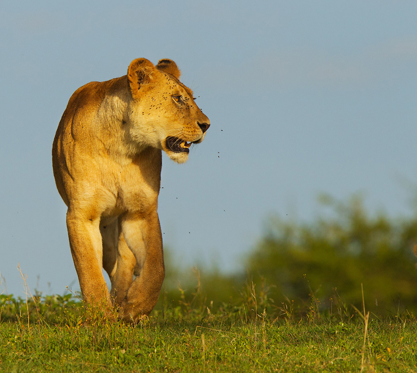 A rare opportunity to photograph a lion up close with the sky as the background. The lion was watching her cubs.