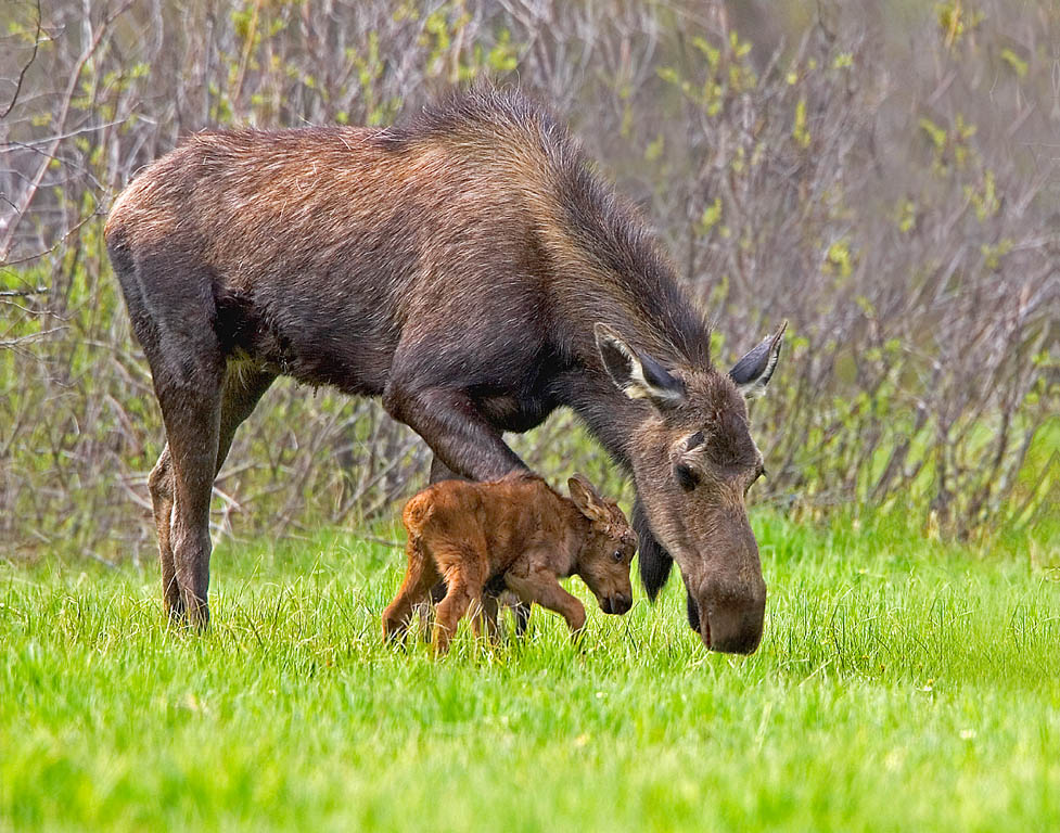 Cow Moose with Newborn Calf