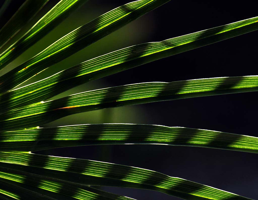 I was attracted to the play of light and how the shadows from another frond were being cast on this one in different directions.