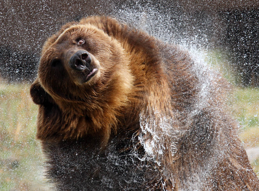 Photographing animals shaking off water is one of my favorites! I love the energy that the water adds to the scene. When this big brown bear came out of her pond I was delighted that she decided to shake.
