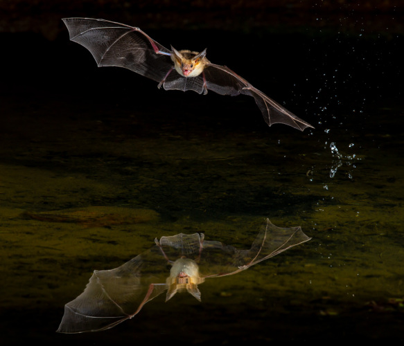 Bat coming in to drink water in the early morning hours in May 2015.