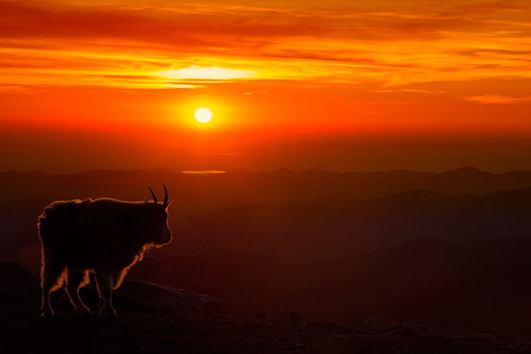 Mountain goat at sunrise